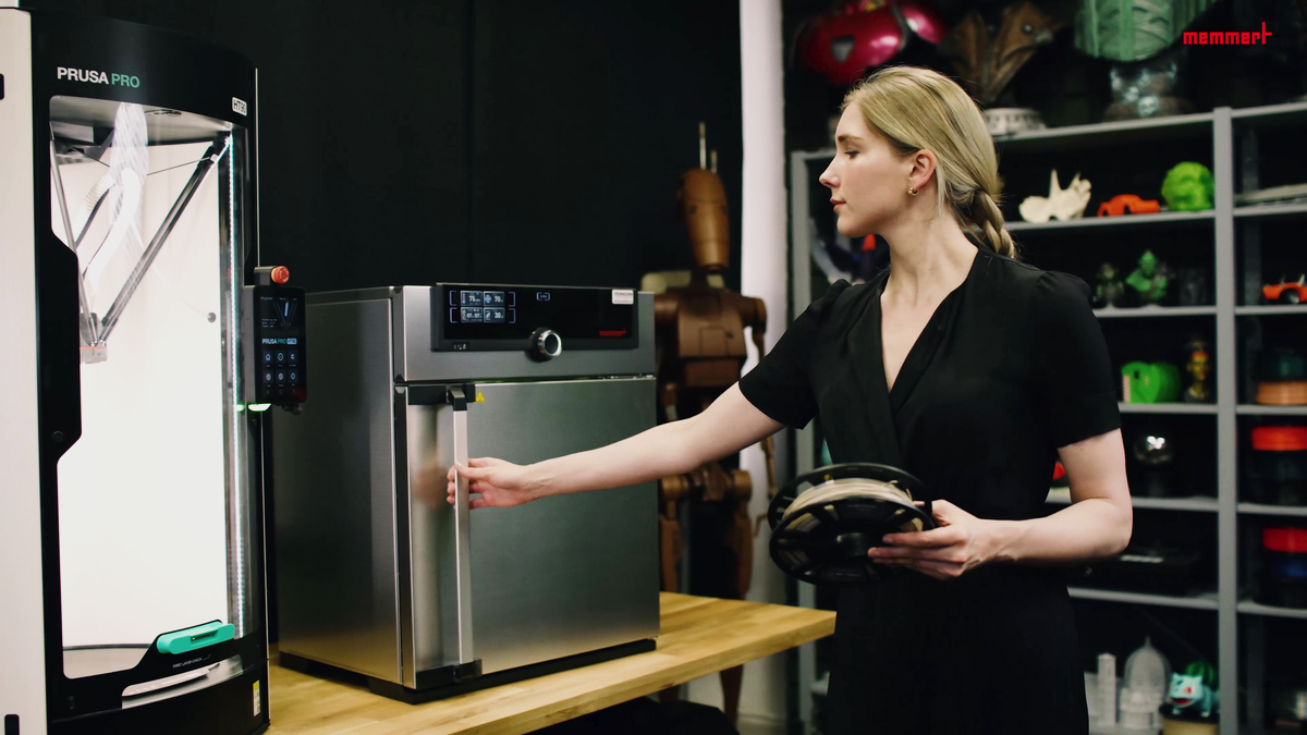 Zdeněk Zavázal, de verantwoordelijke voor kwaliteitscontrole en tests bij Prusa Research, verklaart: “We hadden eerder een andere droogoven uitgeprobeerd, maar na een onbemande droogsessie van een nogal prijzig filament bleek het materiaal 's morgens compleet gesmolten. Dat was een duidelijk signaal dat we betrouwbare apparatuur nodig hadden.”